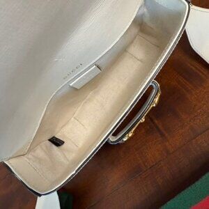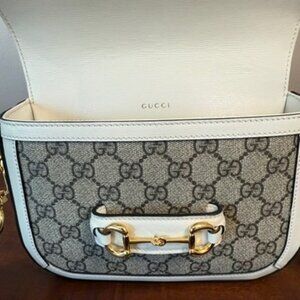 Gucci Horsebit 1955 Small Shoulder Crossbody Bag GG Supreme Canvas White Leather
