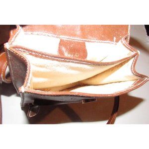 The pack is unique, eye-catching, and classic! It is a made of super soft, caramel brown leather with two, longer straps. It is boxy with an envelope top, snap top closure. There are two exterior pockets with leather zip fobs and bold gold horse-bit accents attaching the straps at the tops and small buckles engraved 'Gucci' at the bottom.! The two adjustable straps allow it to be worn as a back pack or slung on one shoulder.