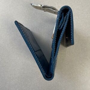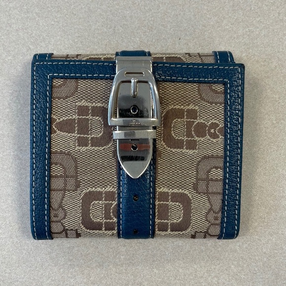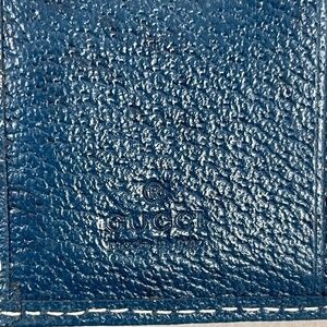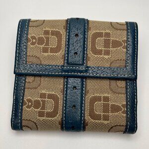 Gucci Horsebit Brown Canvas Buckle Compact Wallet w/ Navy Leather Trim- Preowned