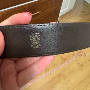 This luxurious Gucci belt is crafted from rich brown leather, featuring a sophisticated textured design that adds a touch of elegance to any outfit. The belt is equipped with a classic metal buckle, ensuring both style and functionality. Perfect for elevating your accessory collection, this belt embodies Gucci's commitment to quality and timeless fashion. Corset-style buckle
