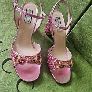 Gucci Horsebit Glittered Sandals - Pink size 37