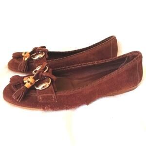 Gucci Horsebit Loafers Sz 6.5 B Suede Leather Bamboo Tassel Glam Italy has Flaw