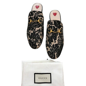 Gucci Horsebit Princetown Black Lace Loafers Slides Flats Mules 8.5 38.5