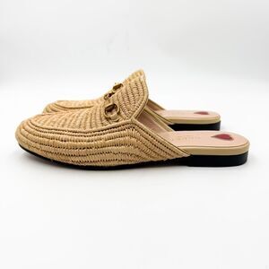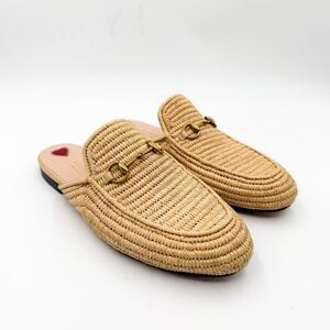 Gucci Horsebit Raffia Princetown Neutral Mules Loafers EU 39.5 US 9.5