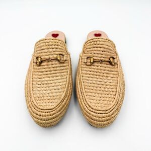 Authentic Gucci Horsebit Princetown Raffia Loafers Mules