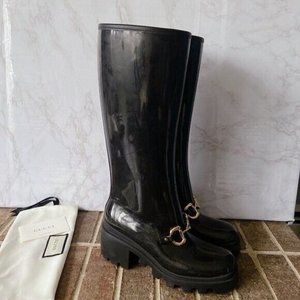 Gucci Horsebit Trip Lug Platform Heel Knee High Waterproof Rain Boot Black EU 37