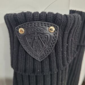 Gucci Hysteria Black Knit Sock Leather High Heel Wedge Slouch Boots GG Logo