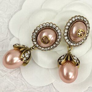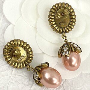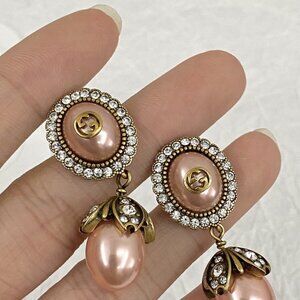 Gucci's stunning gold earrings with a sparkling GG logo and crystal accents. These brand new, unused earrings come with the original box, ensuring a luxurious experience.