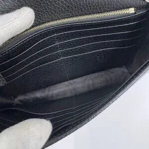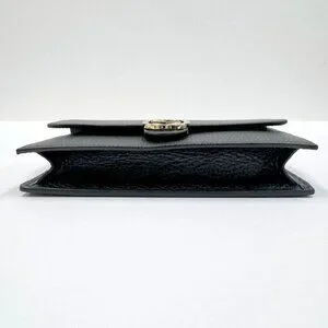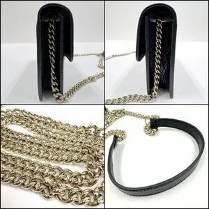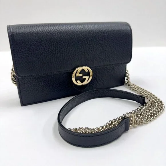 Gucci Interlocking Chain Wallet Black Leather Gold