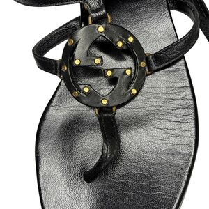 Gucci Interlocking G Black Leather Strappy Ankle Wrap Logo Thong Sandals Size 8B