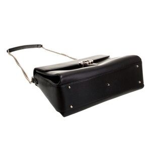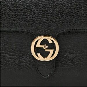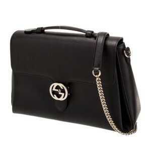 Interlocking G Top Handle Shoulder Bag in Black. This chic shoulder bag is crafted of grained calfskin leather in black.