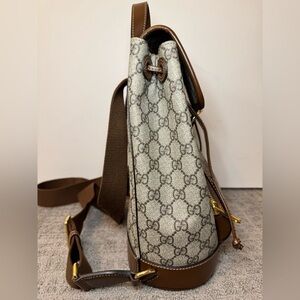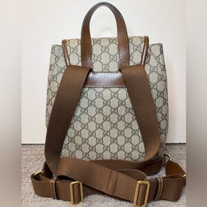 Excellent condition. No exterior damage or stains. One spot inside (pictured), and a little discoloration on one strap (pictured). Some strap creasing from adjusting length.