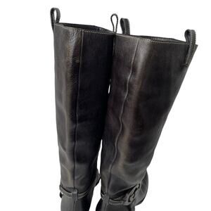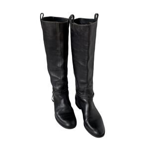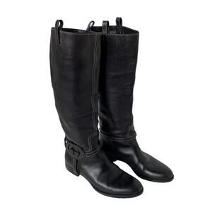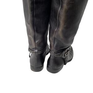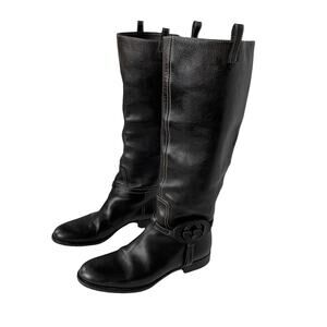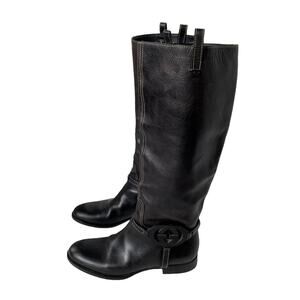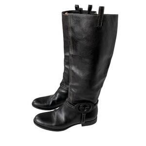 Gucci Interlocking G Logo Tall Riding Boots Knee Leather Black 7 GUC