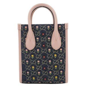 Gucci Interlocking G Mini Denim Tote Shoulder Bag Pink 671623