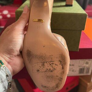Nearly new. Authentic matelassé-effect, unique tone-on-tone style, leather mules.