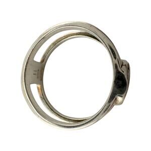 Gucci interlocking G open band ring. A G and upside down G interlocked together. Solid silver part at back that has brand stamp and hallmark information Band is open on the sides with just top and bottom thin ring.