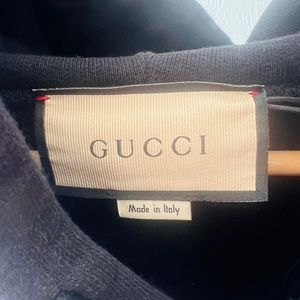A playful take on House codes, green, red and white stripes reminiscent of the classic Web combine with the Interlocking G logo atop this black felted cotton jersey hooded sweatshirt, specifically washed for a vintage effect.