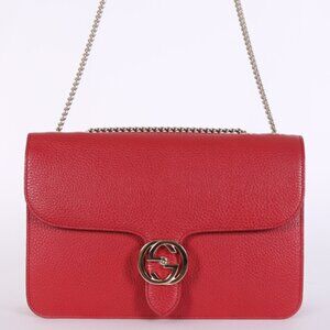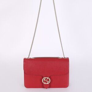 NWT - Brand new. This sophisticated bag is a fun and glamorous bag from Gucci. Featuring gorgeous red leather and a goldtone interlocking GG logo clasp. The interior is perfect for holding your essentials and the chain strap can be tucked in and carried as a clutch. A perfect bag to love now and later.