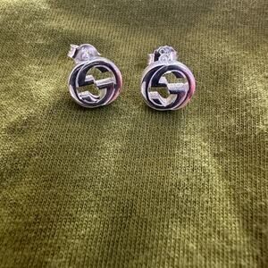 *Stock photo is just a representation of style and may not be an exact match. Gucci Interlocking G Stud Earrings .925 Sterling Silver Pierced Earrings