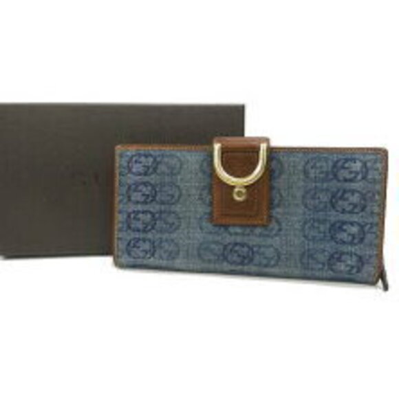 Gucci Interlocking GG Denim Long Wallet Leather Blue