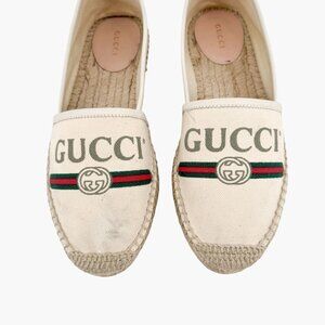 Gucci Interlocking GG Espadrille EU 37.5 US 7.5 Beige Web Stripe Logo Canvas