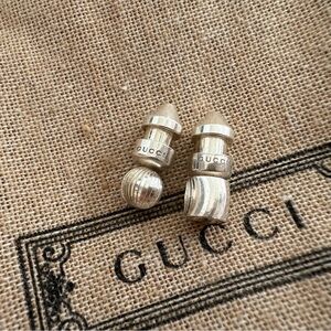 Sophisticated Gucci silver studs with a textured design. Ideal for adding a touch of luxury.