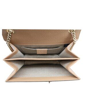The GUCCI Interlocking GG Small Crossbody Bag in beige Dollar calfskin leather exudes refined simplicity. Compact and elegant, it’s perfect for everyday sophistication.