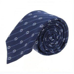 Gucci Interlocking GG and Dots Navy Silk Tie