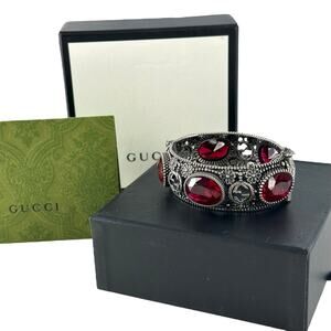 -Authentic Gucci Interlocking Silver GG Cat Flower Bracelet