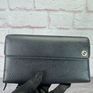 Authentic Gucci Interlocking G Black Leather Continental Wallet