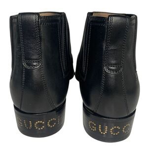 Gucci ankle boots, Chelsea boots, Gucci brogue boots, black leather Gucci boots, interlocking GG boots, designer Chelsea boots, Gucci EU 37 US 7, block heel boots, Gucci gold hardware, leat