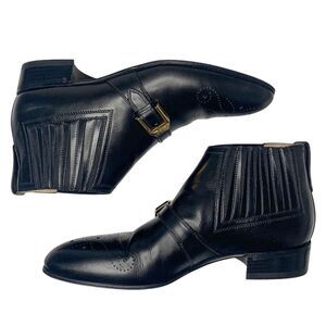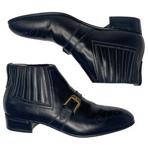 Step up your footwear game with these authentic Gucci black leather brogue ankle boots, featuring signature interlocking GG perforated detailing and classic Chelsea boot styling. Crafted in smooth black leather with premium Gucci hardware, these boots are the perfect blend of timeless sophistication and modern edge.