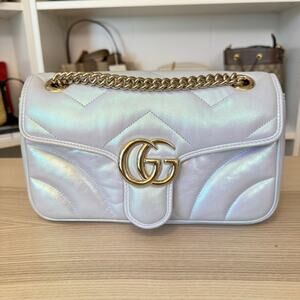 Gucci Iridescent Chevron Matelasse Small GG Marmont Iridescent Snow Light Blue