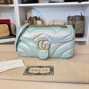 Gucci Iridescent Chevron Matelasse Small GG Marmont Shoulder Iridescent Green