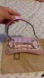 Elegant pink quilted women's bag featuring stylish chain detail. Perfect for adding a touch of sophistication to any outfit. Iridescent Nappa Vertical Matelasse Small Maxi Horsebit Chain Shoulder Bag Escape Pink Base length: 10.5 in