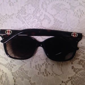 Gucci, Italy, Brown Tortoise with Red and Green Band Sunglasses With Brown Case (kft2zp)