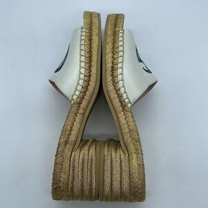 Gucci Ivory Gold GG interlocking heeled espadrille mules 37
