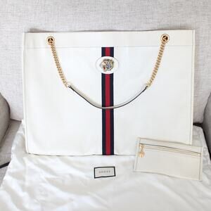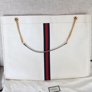 Gucci Ivory White Rajah Web-Striped Leather Tote Bag