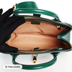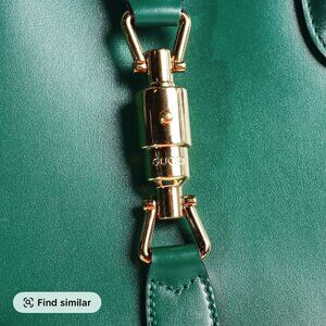 This stunning Gucci Jackie 1961 Medium Tote in Emerald Green calfskin leather is in exceptional condition. The bag has been carefully stored and rarely (if ever) used. The interior is pristine, with minor scuff marks on the leather exterior from storage only. No odors or flaws.