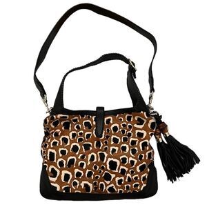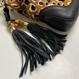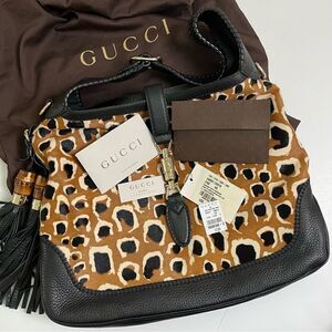 AUTHENTIC Gucci Jackie Bamboo Tassel Leopard Animal Print Calf Hair Leather Ponyhair Hobo + Strap NWT $3200