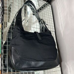 Gucci Jackie Black Nylon Pebbled Leather Black Metal Piston Closure Shoulder Bag