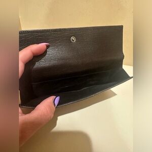 Used Vintage condition Gucci Long Jackie Wallet with wear apparent from use all over. Corner rubs and wear and some loss of piping on the corners. The interior has some rubbing although fairly clean. The coin compartment has some residue. I pictured the made in and serials as well. The piston open and close works well. Thanks for looking!