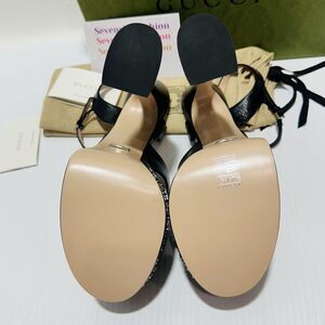 Gucci Janaya Black Interlocking G Studs 40.5/ US 10.5 Heels Platform Sandals NIB
