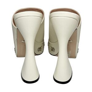 Step into bold luxury with these stunning Gucci Janaya Platform Sandals in the coveted Mystic White shade. Featuring a dramatic platform, sculpted block heel, and silver GG studded detailing around the midsole, these sandals deliver modern glamour with unmistakable Gucci craftsmanship.