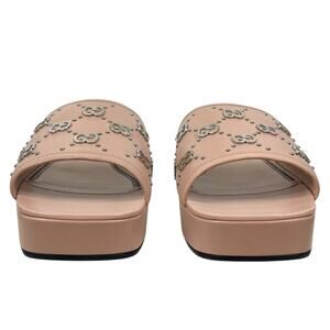NEW Gucci Janaya Interlocking G Studs Open Toe Slide Sandals Pink