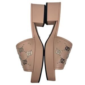 Gucci Janaya Interlocking G Studs Open Toe Slide Sandals Pink Size 39.5