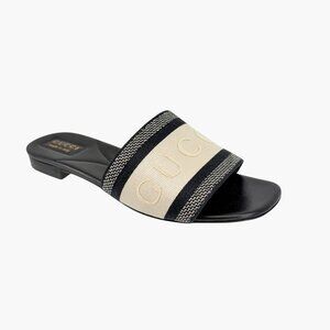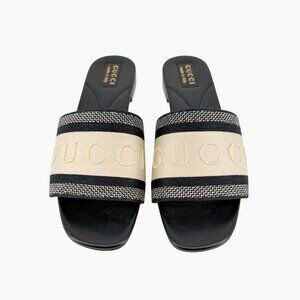 Gucci Jane Black White Embroidered Logo Slide Mule Sandals Size 39 US 9 Women's