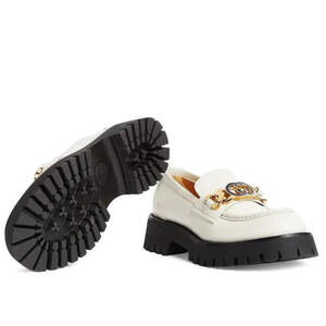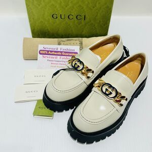 Gucci Jeanne Interlocking G US 9 Loafers White Leather Lug Sole Shoes NIB $1,190