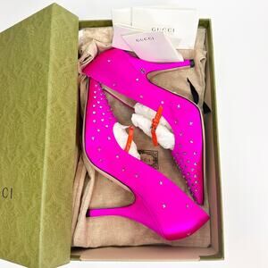 Gucci Jodie Crystal Embellished Satin Pump - Women’s 8.5