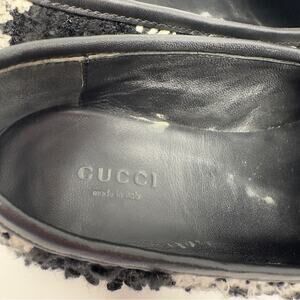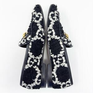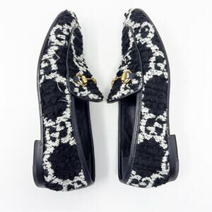 Gucci Jordaan GG Tweed Horsebit Loafers Black White Size 37